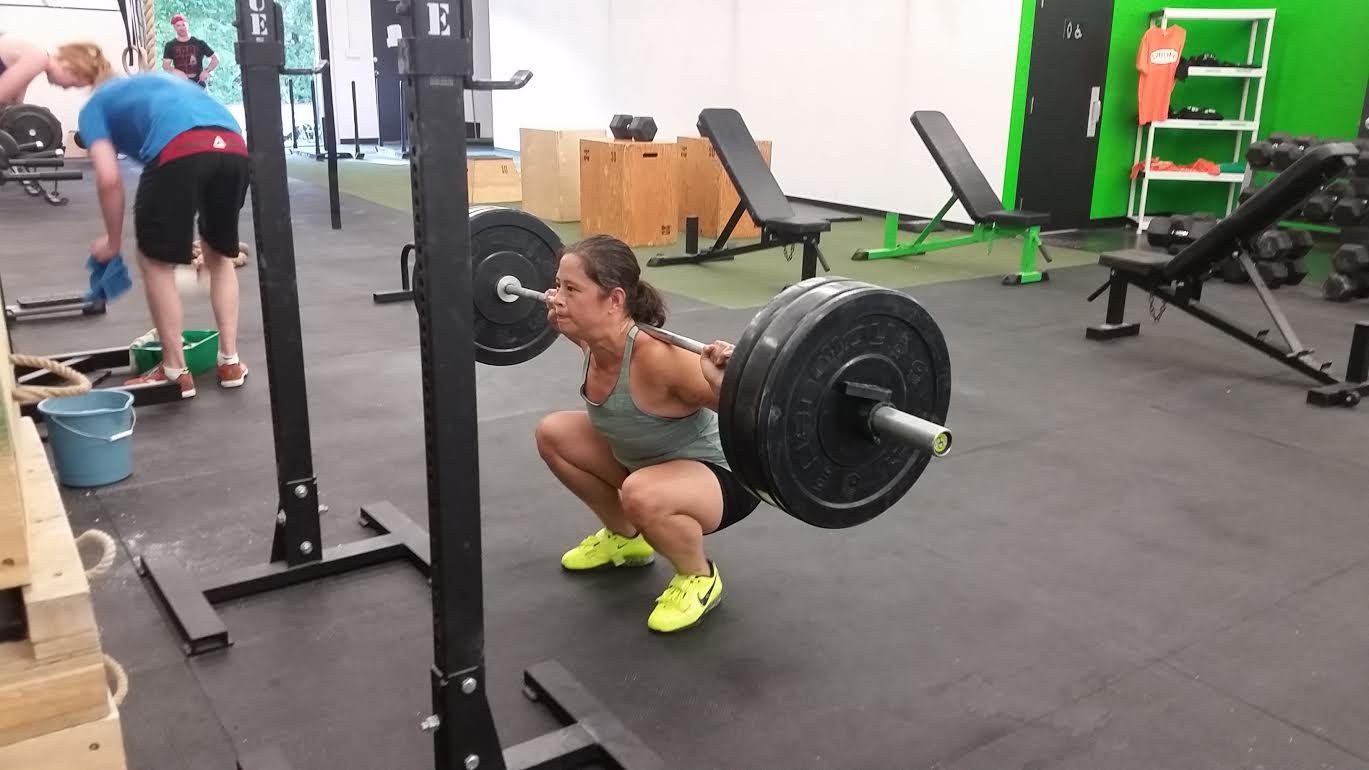I still have so much to learn, and new goals to attain but I know it’s a work in progress. I’m excited to see how far this will take me. I can’t thank the coaches enough for helping me push myself to the limit everyday both mentally and physically. I’ve played so many different sports throughout the years, but I’ve never been stronger, fitter or leaner in all my life!! Because there are no mirrors in the gym, I don’t see the physical changes my body has endured. I have to do a double take when I see a muscle bulge out of my thigh, my arm or my back… MY BACK?!! CrossFit started out as a way for me to take a break from being a mom, but it has become the sport I love!! To everyone in our community, I could not have gotten this far without you, I can now carry my kids and all my groceries from the car to house in one trip, thank you 🙂