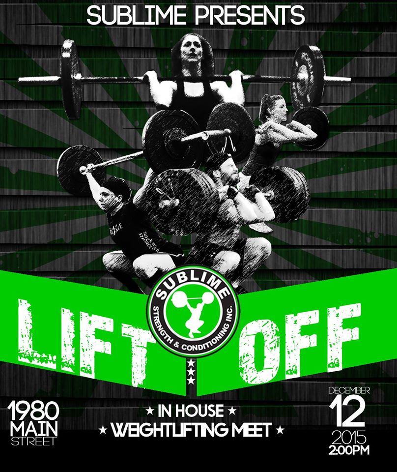 Sublime Lift Off is this Saturday beginning roughly around 2pm! We have 12 lifters, be sure to come down and check it out. Should be a good time.